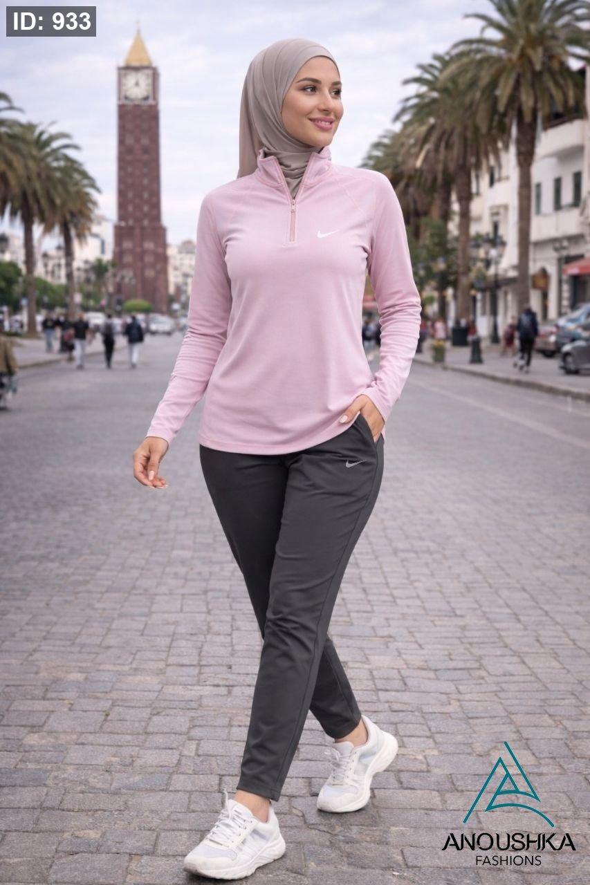 بدلة الو Dry Fit (بلوزة مع طاقية + تايتس فلير)